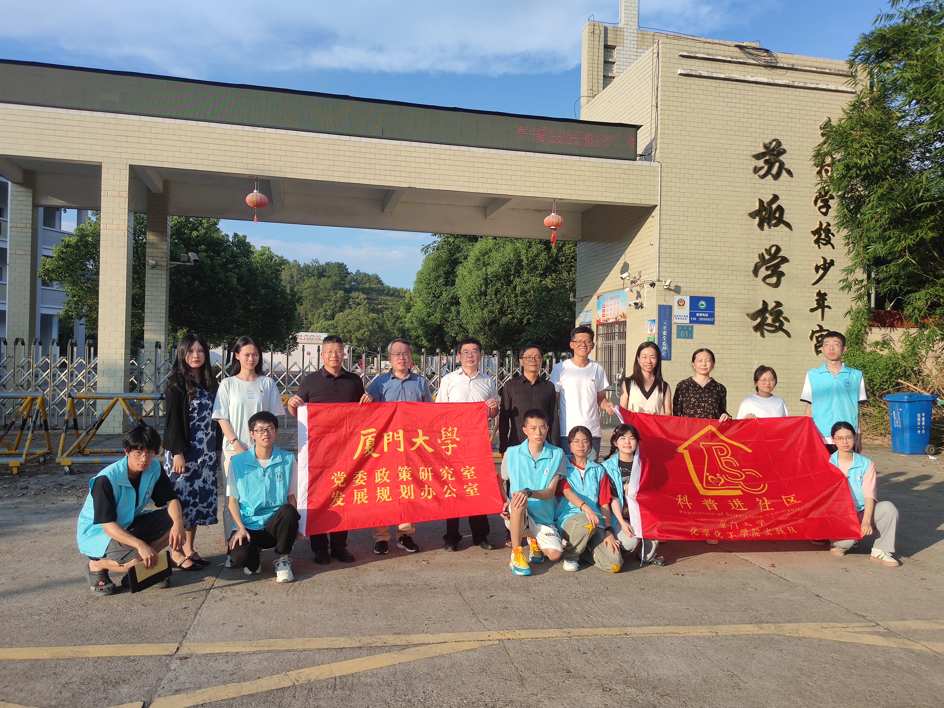 在黄地村调研时,听闻我校化学化工学院“科普进社区”实践队正在苏坂学校开展暑期社会实践活动,支部党员前往苏坂学校看望实践队师生,大家与支教师生进行亲切交谈,关心他们在当地的基本生活情况,详细了解在支教学校的实践工作情况,并对他们完成后续的实践活动提出具体的指导建议。