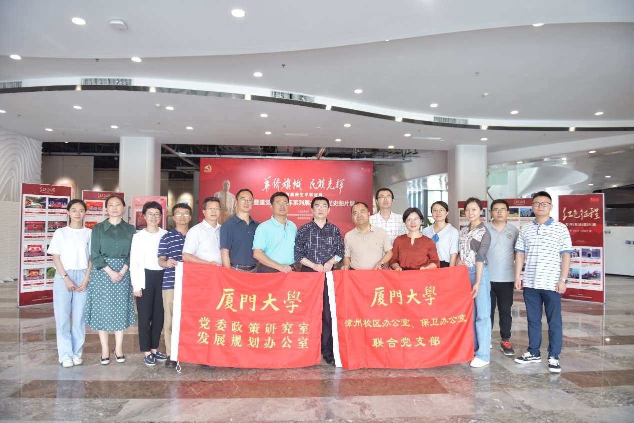 5月18日,为学习贯彻习近平总书记在党史学习教育动员大会上的重要讲话精神,深入开展党史校情主题教育,党委政策研究室、发展规划办公室党支部与漳州校区办公室、保卫办联合党支部开展共建活动,共同前往漳州开发区光影艺术馆参观“华侨旗帜民族光辉——陈嘉庚生平事迹展暨建党100周年系列展之百年党史图片展”。