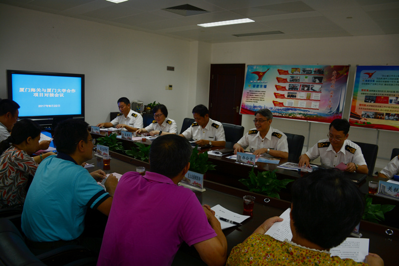 9月22日,为促进厦门大学与厦门海关的进一步合作,我校发展规划办公室、图书馆、科技处、社科处、等相关单位以及相关学院一行到厦门海关进行交流座谈,与厦门海关办公室主任赵震云以及法规处、教育处、统计处、监通处、人事处等相关部门进行会谈交流。