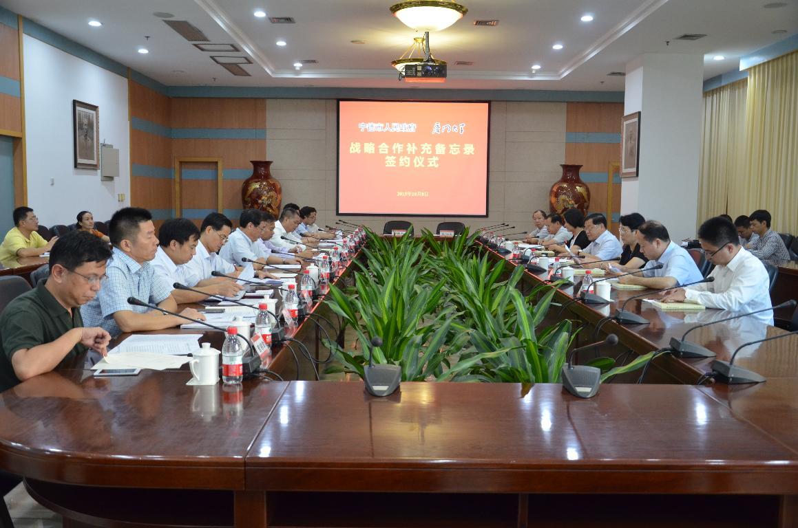 张彦在致辞中表示,自2013年厦门大学与宁德市人民政府签署战略合作协议以来,双方在领导互访沟通交流、科技创新合作、文化研究、干部培训、学生实践、共建教学实习基地和研发中心等方面取得了显著的成绩。双方有多年合作的基础,也面临新的发展机遇,希望能以战略合作补充备忘录的签署为新起点,进一步拓宽领域、明确重点、深化合作,为宁德市的科学发展、跨越发展,也为厦门大学高水平大学建设做出新贡献。